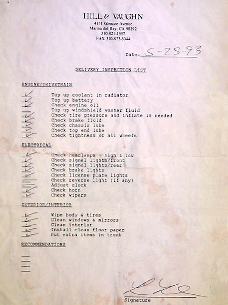 ![]() | In the early nineties one of the world's 200 richest men purchasedthis tiny Spanish-built 4 seat coupe in Madrin, Spain and had itshipped halfway around the world. He then spent a king's ransom to havethe little car restored to showroom condition at one of the world's mostrespected and expensive automotive restoration facilities. When the carwas completed, he presented it to his fabulously rich and sophisticatedwife as if it were the only jewel that her marvelous collection lacked.It is assumed that she was non-plussed. Built in Barcelona in 1967, this simple Seat 850 Coupe was originallypurchased new by Maria Fernanda Fernandez Posada of Madrid, Spain, whoheld on to her registrationpermits, warranty coupon booklet, manuals, and technical inspection documentsthroughout the life of the car. Ms. Posada registered & inspected thecar yearly during her 26 years of ownership, and travelled only a littleover 89,000 kilometers (55,000 miles) in that time, an average of lessthan 2200 miles per year. In early 1993 Ms. Posada sold the modest coupeto an agent ofbillionairemedia mogul Emilio Azcárraga “Tiger” Milmo, for reasons bestunderstood only by “The Tiger” himself. The Coupe was subsequently imported to Los Angeles, where it was deliveredto an eager Mr. Azcárraga. Tiger's agent dropped the car off atthe Hollywood Chevron at 1934 Cahuenga Boulevard on March 9th 1993 fora smog test, where station personnel recorded an odometer reading of 89,200kilometers on the invoice.Perhaps Mr. Azcárraga decided then and there that the car neededmechanical attention of a higher level, because the car was soon parked& disassembled inside the renowned automotive restoration facilityof Hill & Vaughn in MarinaDel Rey, California for a thorough cosmetic and mechanical restoration.At least 377documented billable hours and possibly many more undocumented oneswere spent on the humble coupe by Hill & Vaughn specialists, who normallywork their magic on such PebbleBeach Concours icons as Hispano-Suiza, Delahaye,Bugatti, pre-war Cadillacs, and the like. The completed coupe was inspectedand released by Hill & Vaughn on May 23rd, 1993, and ownership wasofficially transferred to Mr. Azcárraga by the California DMV onthat same day. Soon afterward, as the story goes, the multi-billionairegave the car to his current wife PaulaCussi as a present. A Latin-American celebrity in her own right,Ms. Cussi had risen to fame and popularity via her appearances on popularSpanish language variety shows which aired throughout the Latin-Americanworld. At the time of her gift, she was in the midst of a highly regardedsecond career as the Managing Director of the Cultural Center for ContemporaryArt in Mexico City. It is not known why The Tiger would present the carto Paula Cussi, a rich and worldly woman who one would assume would havelittle time or interest in such a modest vehicle. Did he do it as an elaboratejoke? A romantic reminder of simpler times? What we do know is that PaulaCussi did register and insure the car in her name as a daily driver forthe next five years. The car remained hers past the date of her divorcefrom Mr. Azcárraga and his later marriage to Adriana Abascal, MissMexico and 5th runner up in the 1989 Miss Universe pageant. Indeed, PaulaCussi remained the registered owner of the diminutive Spanish coupe beyondthe date of Mr. Azcárraga’s untimely death of cancer in 1997.As might have been expected, Paula did not use the car regularly, as ithas only covered 600 kilometers (373 miles, or about 2 tanks of gas) betweenits arrival in the United States and its eventual sale to a baldingyet curiously pointy-haired Network Engineer in late1999. Said engineerwas only looking for a cheap and fun daily driver, and did not know thehistory of the lovely Coupe until after he had purchased it. He is quitesurprised about the car's unique and unexpected pedigree, and enjoys thecar regularly, but only on special jaunts, not as a daily driver. The caris fantastically reliable, and is literally as new as it was in 1967. A550 kilo 50 hp time machine, and likely the only one in the world in thiscondition. | ||||